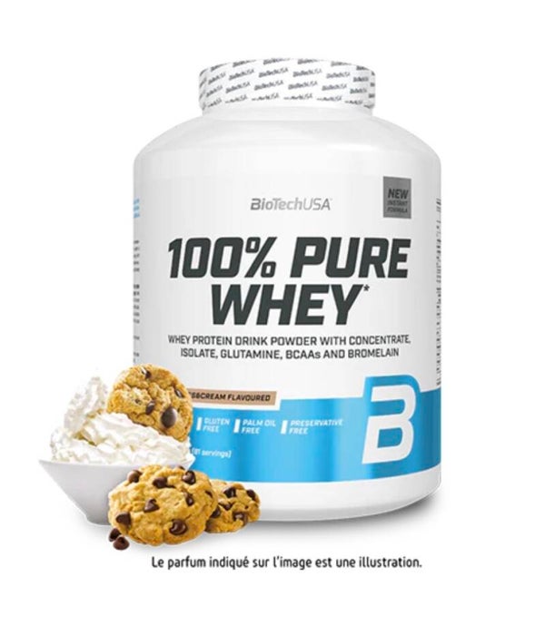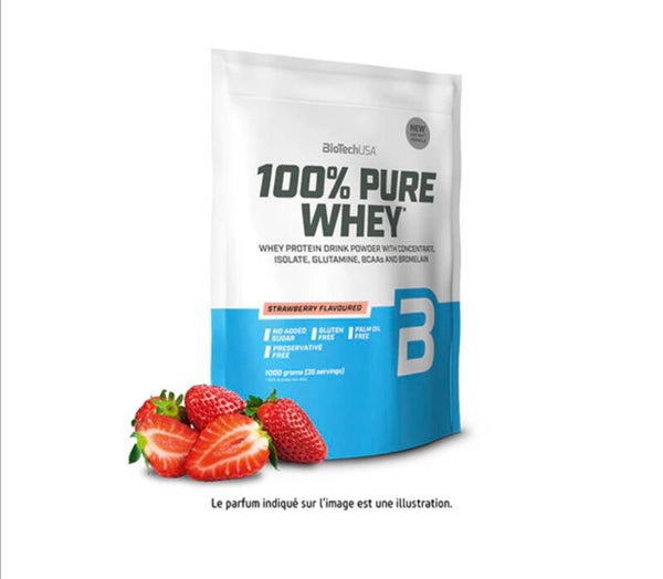 100% Pure Whey, ce sont des protéines en poudre d'excellente qualité à haute valeur biologique, dont la teneur en protéines est constituée à 100% de protéines de lactosérum. Disposant d'un large éventail de goûts, la boisson 100% Pure Whey est le fruit de la combinaison de concentré et d'isolat de protéines de lactosérum et d'acides aminés ajoutés (L-glutamine, L-arginine et BCAA).
