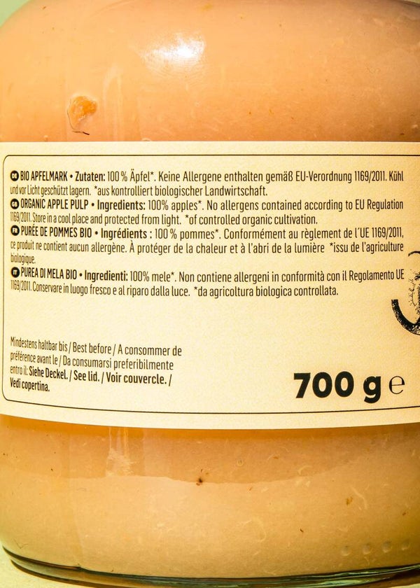 Pour notre purée de pommes, nous avons utilisé les meilleures pommes bio, et rien d’autre! Pas de sucre ajouté ou d’additifs, juste le pur plaisir du fruit et une texture onctueuse. Commandez dès maintenant notre purée de pommes bio au format 700g.