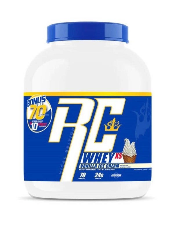 Ronnie Coleman Signature Series Whey XS change le jeu des protéines en vous apportant une délicieuse poudre de protéines de lactosérum de haute qualité à un prix abordable. Tout le monde sait que les protéines sont ce qui vous aide à développer vos muscles et à atteindre vos objectifs physiques. Tout le monde sait aussi que le lactosérum est la source préférée de protéines. Whey XS fournit 22 grammes de protéines de qualité par cuillère à un prix qui a du sens pour vous.