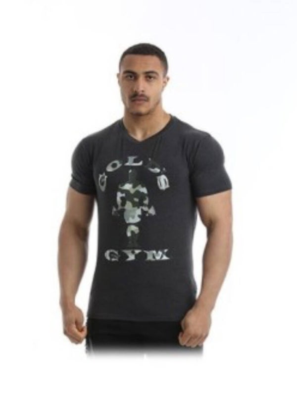Conçu avec le logo distinctif et emblématique de Gold Gym Muscle Joe dans un imprimé camouflage, manches courtes et col rond, ce t-shirt est fabriqué à partir de 95 % coton et 5 % élasthanne, léger et respirant, mais résistant et se lave facilement.
