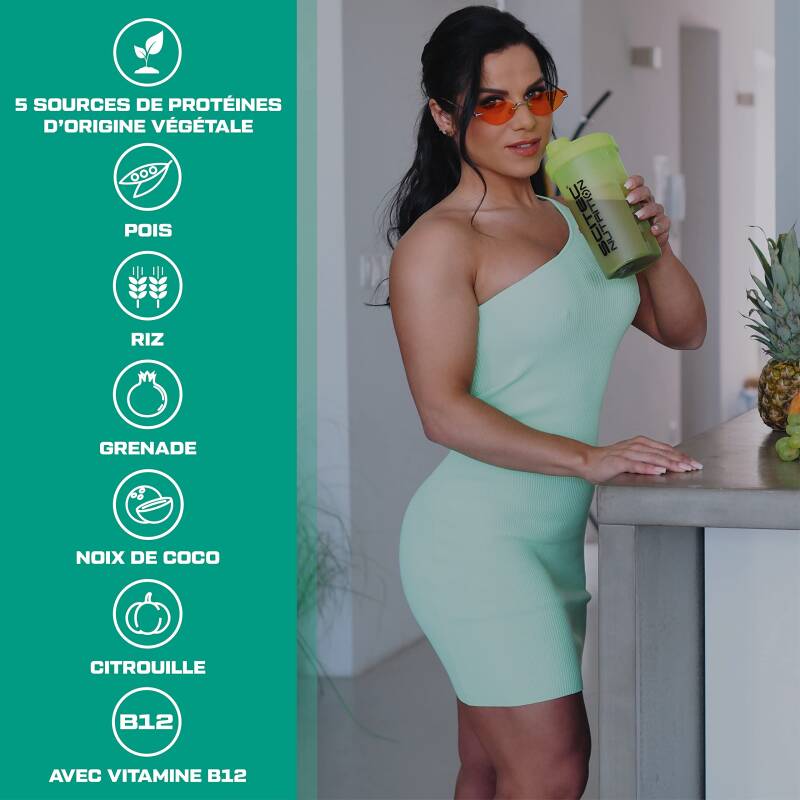 100% Vegan Protein est une protéine vegan fabriquée par Scitec Nutrition. Ce complément alimentaire en poudre est fabriqué à partir de plusieurs sources de protéines d'origine 100% végétale (protéine de pois, de riz, de citrouille, de noix de coco et de grenade). 100% Vegan Protein est un produit qui ne contient pas de sucre, pas de conservateur et pas de gluten. C'est donc une alternative idéale aux protéines en poudre contenant du lactose.