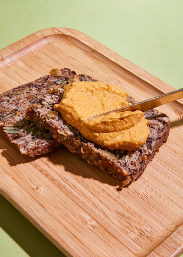 Peu importe comment vous l'utilisez, avec notre tartinade délicieuse et fondante, vous avez un plaisir incomparable à porté de main ! La composition crémeuse de potiron, de sirop d'agave et de graines de tournesol réhausse chaque préparation et pimpe n'importe quel sandwich dans votre lunch box, mais affine également les sauces, les trempettes et les vinaigrettes. Que ce soit pour une trempette de légumes lors de la prochaine soirée cinéma ou comme alternative à la mayonnaise et au ketchup au barbecue - la tartinade vegan de potiron est toujours un moment fort culinaire. Elle est délicieuse dans les currys, les soupes ou les ragoûts, entre autres, et est encore plus amusante lors de la préparation de plats extravagants.