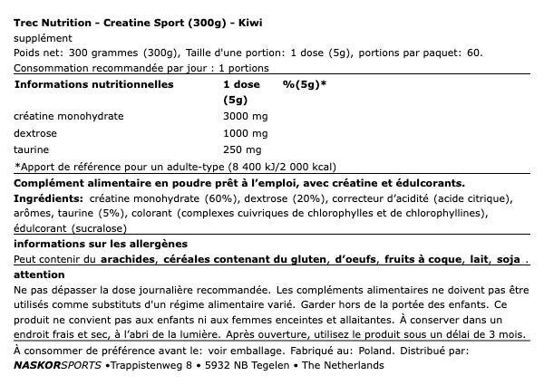 Creatine Sport est un conditionneur qui fournira à votre corps une grande quantité de créatine, de taurine et de dextrose.