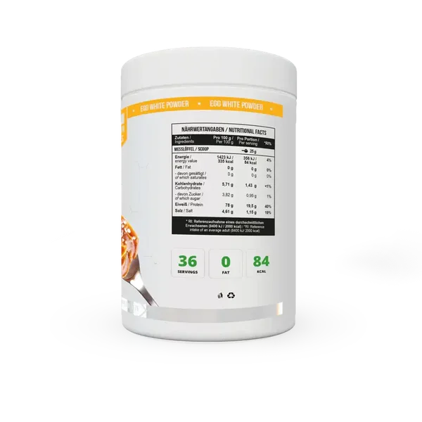 La protéine de blanc d’œuf MST® est une bonne alternative aux protéines de lait. Chaque portion contient 19,5g de protéines rapidement digestibles et seulement 84 kcal. Contient un minimum de matières grasses et de glucides et est totalement sans sucre. Il est idéal pour tous ceux qui ont besoin d’augmenter leur apport en protéines, ainsi que pour les personnes souffrant de diverses intolérances alimentaires.