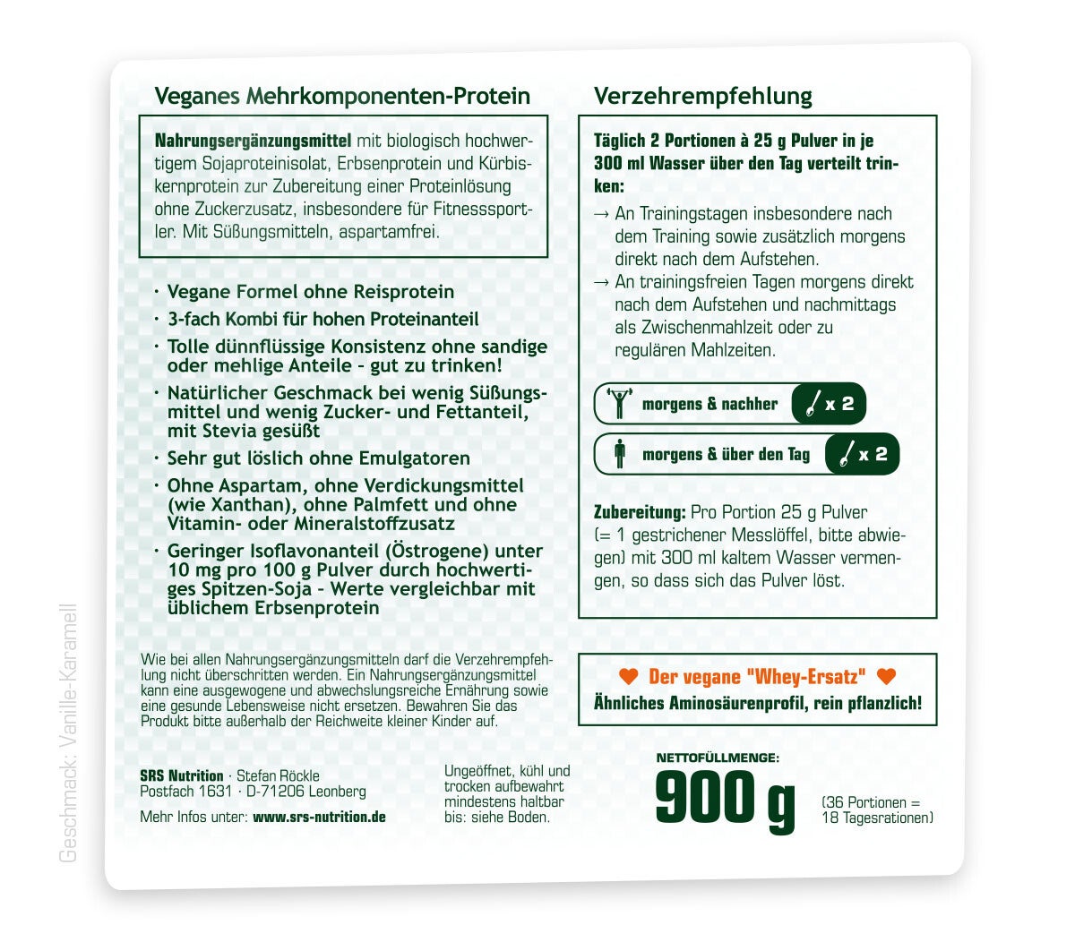 Fabriqué à partir de protéines de soja spécial (Très faible en oestrogène!) en combinaison avec des protéines de pois et de graines de courge.