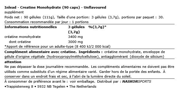 Avec les gélules de créatine monohydrate d'Inlead Nutrition, vous disposez d'un complément alimentaire qui s'intègre parfaitement à votre vie quotidienne active et soutient vos performances lors d'entraînements intenses.