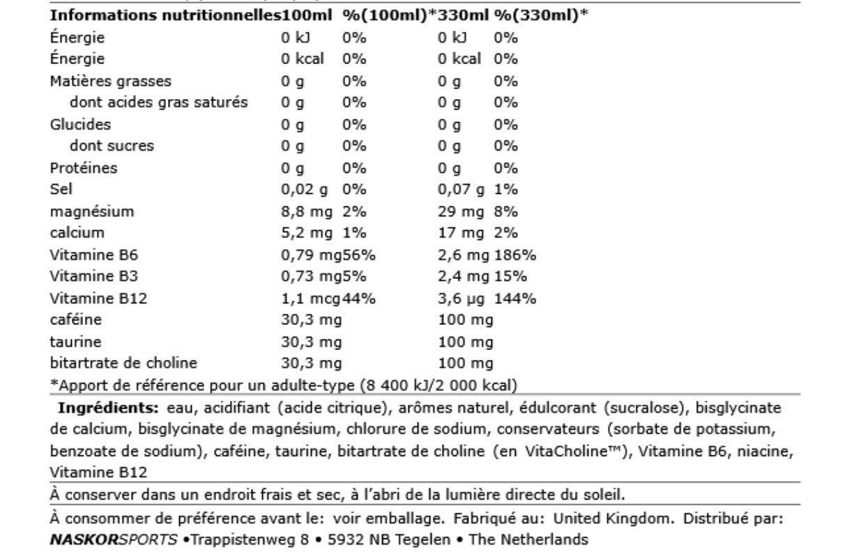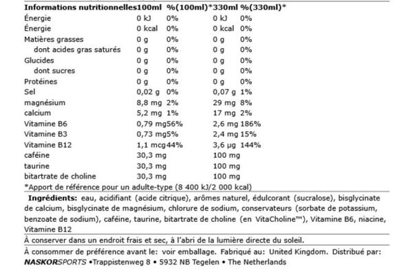 - Enfin, Body Fuel Energy Shot contient des vitamines B, du magnésium, calcium et bitartrate de choline.